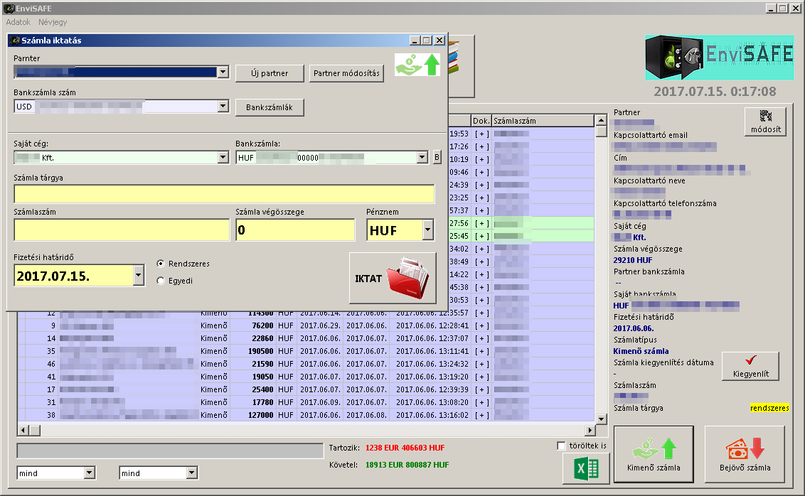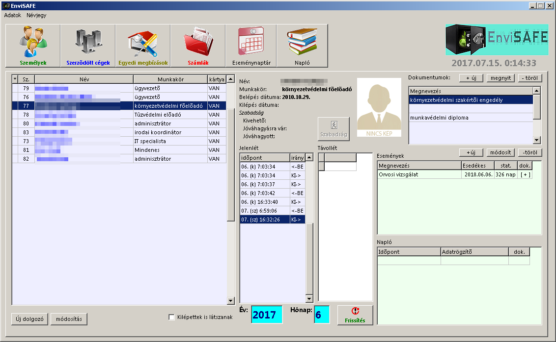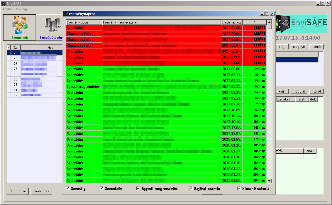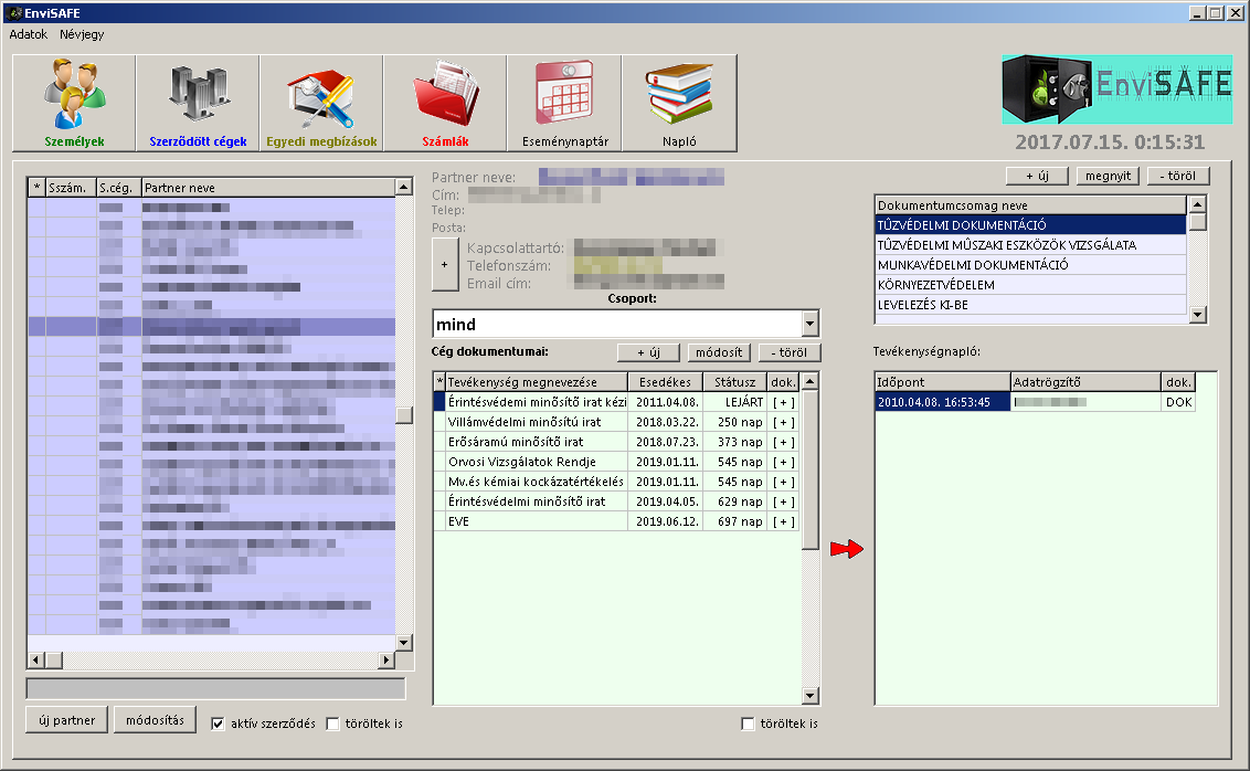 [EnviSAFE] Customer and service management for EHS providers. Features: -Employee management (documents, recurring exams, work time) -Contracted customer management (document storage, audit management, audit documentations, audit logs) -Single service mission management for not recurring services (document storage, statuses) -In/Out invoice register -Can handle more managed companies with more account numbers -Unlimited number of customers -Automatic reporting of overdue, current, future audits and payments. -Every database entry (company, employee, audit, invoice) can hold a document pack -Document packs can include unlimited documents -All functions logged -Lightweight opensource database server -No client installation needed -And much much more..